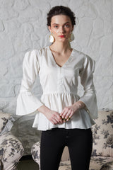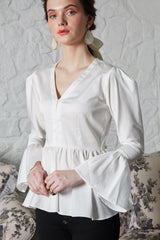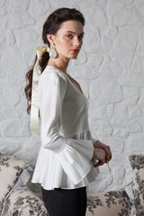 Beauty is in the eye of the beholder, but this top will sway the glances of all who shall cross. Classic bell sleeves make a charming return with this top along with light gathers on the waist, making this a seemingly effortless option for one of those special moments with your beloved.
